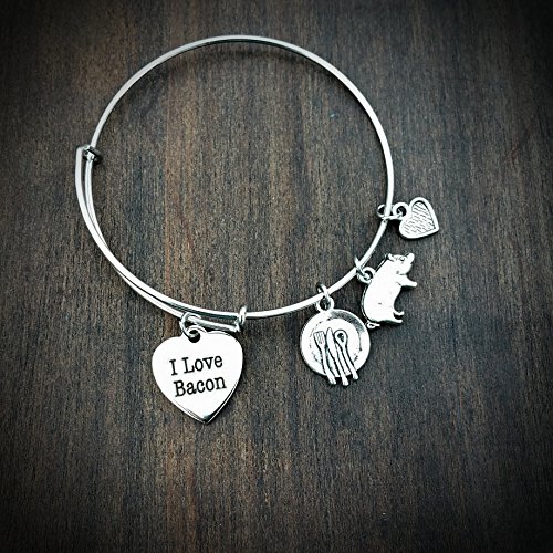 -. Title : I Love Bacon! Adjustable Bangle Bracelet, Bacon Lover, gift for her, custom made, Charm Bracelet, Bacon Gifts, Personalized Affordable