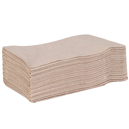 -. Feature : Folded, decorative, 2-ply paper napkins / 1/8 fold design for tabletop silverware placement, and for extra absorbency when folded / Measures 15" x 17" (W x L) when unfolded, and 4.25" x 7.5" (W x L) when folded / Color is natural brown with embossed pattern / Paper is 30% recycled and contains a minimum of 30% post-consumer waste to meet EPA guidelines for consumer and industrial sanitary tissue