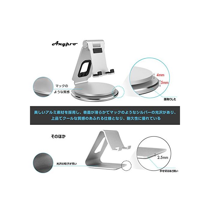 Anypro 타블렛 스탠드 스마호스탄도 본체360°회전 스탠드 공유 즐거움 이중 바닥면에 발군인 안정감 디바이스 스탠드 각도 조정 가능 상처 방지 슬라이딩금지 배선 고정 스트레스 해소 ipho