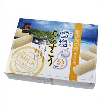 沖縄土産でも大人気の雪塩ちんすこう(ミルク風味)です! 口に入れるとサクサクとしていながらしっとり感もあり、ついつい食べ過ぎてしまいます。雪塩がさりげなく感じられてよりまろやかで上品な甘さとなっています。