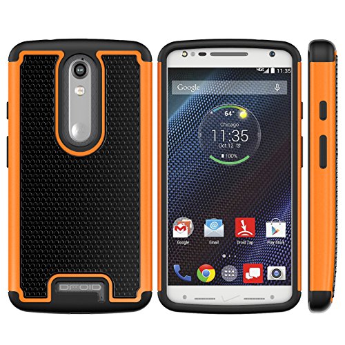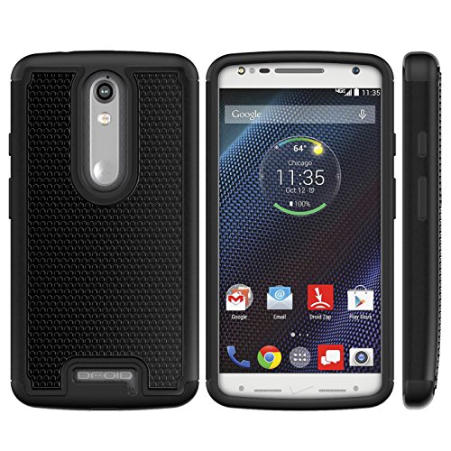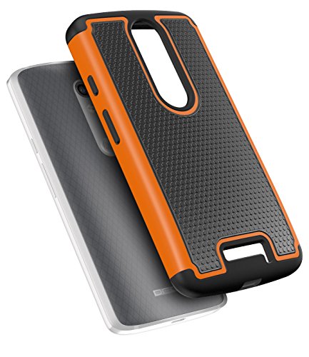 -. Feature : Made of shock absorbing, shatterproof premium silicone and polycarbonate material / Beveled front edges allows lay on the table design for screen protection / Offers full protection for your mobile device / Anti-slip properties gives your smart phone more grip / Compatible with the DROID Turbo 2 (Verizon), Motorola Moto X Force (2015)