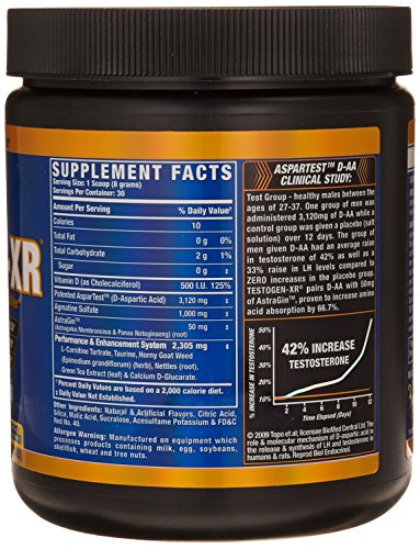 - Feature : THE WORLD'S 1st CONCENTRATED TESTOSTERONE & NITRIC OXIDE BOOSTER: Never before has a product like Testogen-XR been created. Design to boost testosterone and improve blood flow resulting in crazy pumps and intense training sessions. / CLINICALLY PROVEN IN HUMAN TRIALS: Testosterone is what makes a man... a man. But it also affects your metabolism, muscle mass, skin and sex drive. If you are 30+ years old odds are that your Test levels are declining. TESTOGEN-XR is confidence in a bottle. More importantly, the ingredients have been proven in HUMAN CLINICAL TRIALS. / BOOSTS NATURAL TESTOSTERONE LEVELS: A recent study was conducted on 23 healthy males between the ages of 27 and 37. One group of men was administered 3,120mg of D-AA while a control group was given a placebo over 12 days. The group of men given D-AA had an average raise in testosterone of 42% compared to no increases in the placebo group. / AMPLIFY MALE LIBIDO & PERFORMANCE: With 3.12G of D-AA & 1G of Agmatine per scoop, you're sure to feel the difference. / HELPS SUPPORT LEAN BODY MASS & FAT REDUCTION: As mentioned above, low testosterone can affect your metabolism. TESTOGEN-XR will aid your combat against stubborn fat