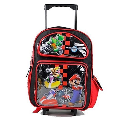 -. Feature : Granny's Best Deals (C) 16" Large Super Mario Brothers Roller Backpack-Red Checkered Rolling Wheeled Bag Backpack-Brand New! / Measures around : 16"H x 12"W x 4"D / Two Front pockets with zipper closure / One Pocket side and one meshed pocket. / Adjustable padded shoulder straps, 100% Authentic