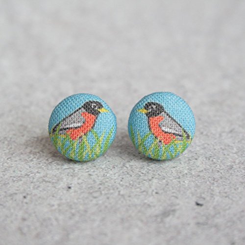 -. Title : Robin Fabric Button Earrings