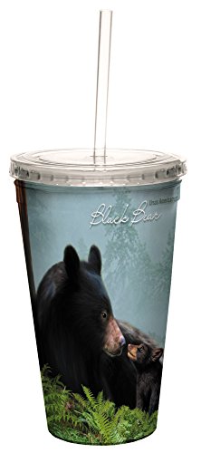 Tree-Free Greetings 35883 Bear Family Double-Walled Cool Cup with Reusable Straw, 16-Ounce