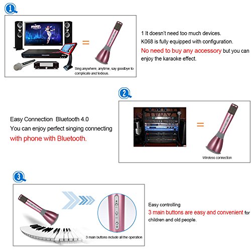 -. Title : Docooler® K068 Mini Karaoke Player Wireless Condenser Microphone with Mic Speaker KTV Singing Record for Smart Phones Computer Gloden