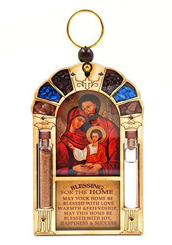 - Contains 2 small glass bottles: Pure Holy Water From The Blessed Jordan River & Genuine Holy Soil From Jerusalem. PLEASE NOTE: Certificate on the back side of blessing has a general description for all models! The presence of holy substances in various models varies!