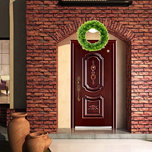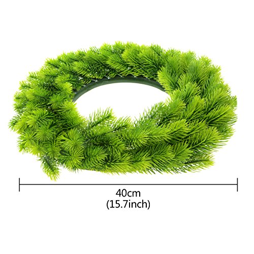 Saim Plastic Plant Pine Needles Front Door Wreath 15.7-Inch Diameter Hanging Wall Window Decoration Seasonal Home Garden Decor