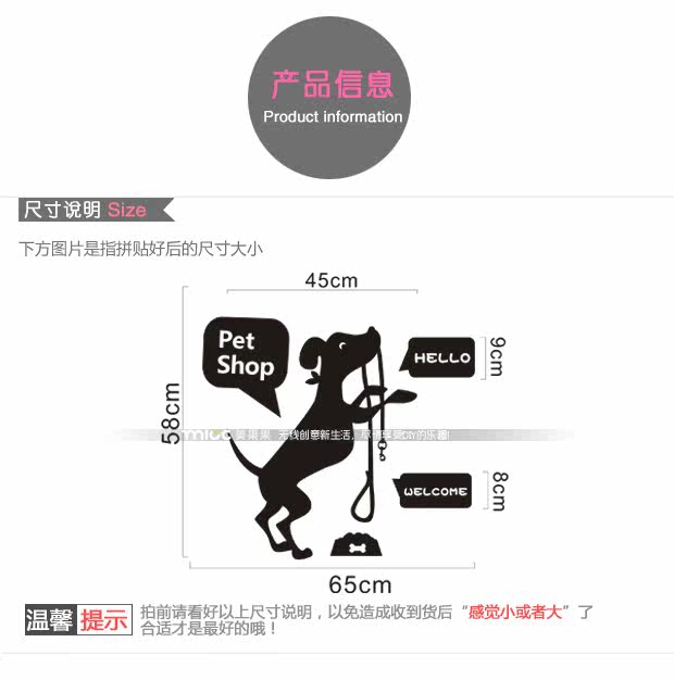 Pet Shop glass sticker dog toy pet shop Welcome baby shop glass door decorations[Material] PVC hollow sculpture characteristics (non-print) self-adhesive, waterproof, sunscreen does not fade, positive and negative one color, durable than five years, the thickness of 0.12mm. Gift transfer film almost 1: 1 distribution (transmembrane please try to reuse)[Baby texture] stick to any smooth surface for walls, wood, windows, glass, tile, wallpaper (non-dimensional surface), metals, automobiles, etc., is the shop decoration, home decoration material of choice.