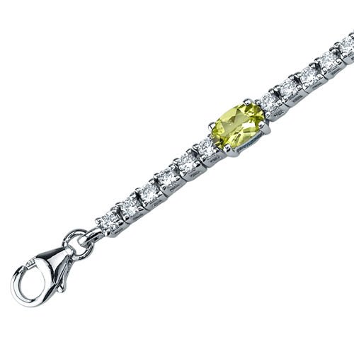 -. Title : Peridot Line Bracelet Sterling Silver Rhodium Nickel Finish 3.75 Carats CZ Accent