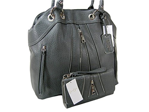 -. Title : New Jessica Simpson Logo Purse Hand Bag & Matching Wallet 2 Piece Set Slate Gray Astor Tote