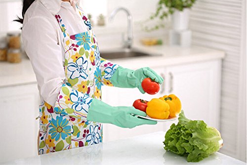 TOPWEL Long Sleeve Flower Green Wide Mouth Plus Velvet Gloves Antiskid Household Laundry Dishwashing Waterproof Gloves (1)