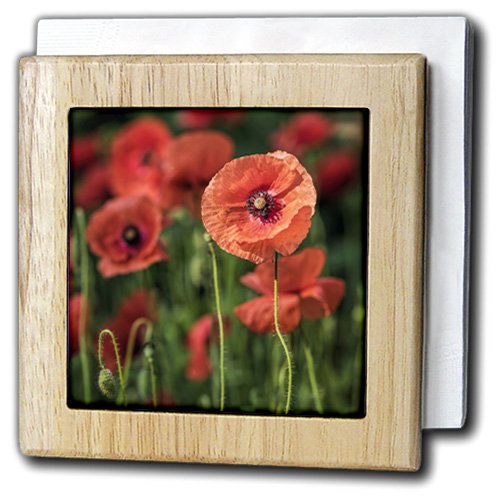-. Title : 3dRose Uta Naumann Photography Flowers - Red Poppy Flowers in Meadow - Tile Napkin Holders