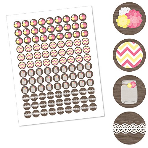 Rustic Floral - Baby, Bridal Shower or Birthday Party Round Candy Sticker Favors - Labels Fit Hershey’s Kisses (1 sheet of 108)