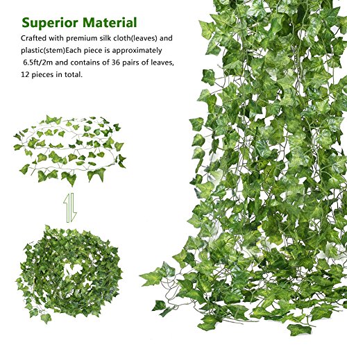 UARTER Artificial Fake Plastics Wedding Ivy Vine Hanging Plants Flowers Greenery Leaves Tree Wreath Garden Kitchen Home Decoration, 12Pcs
