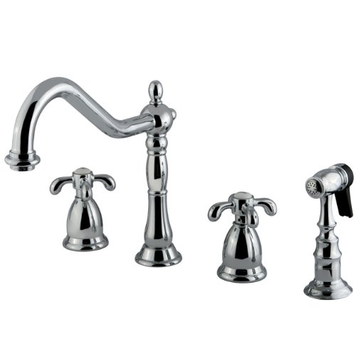 Kingston Brass KS1791TXBS French Country Widespread Kitchen Faucet with Brass Sprayer, Polished Chrome