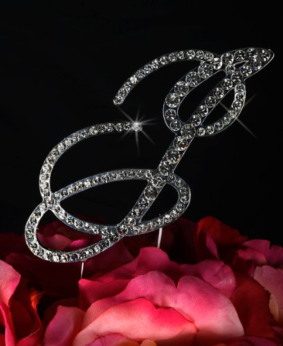 Unik Occasions Victorian Crystal Rhinestone Wedding Cake Topper, Small, Letter J, Silver