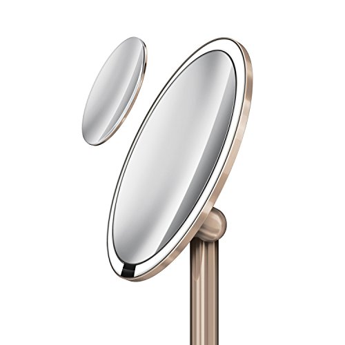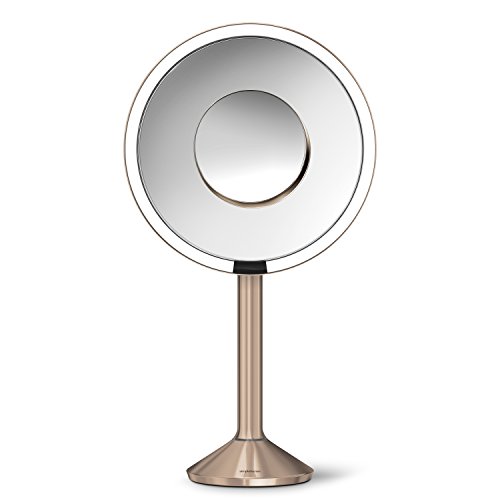 simplehuman Sensor Mirror Pro, 8 inch Round Lighted Makeup Mirror, 5x Magnification, Adjustable Color Temperature + Wifi-Enabled, Rose Gold