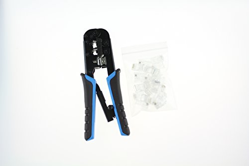 Cow2018 RJ45 CRIMP TOOL + 20 RJ45 CAT5 CAT5e, 8P/RJ-45, 6P/R12, RJ-11 Crimp, Cut and Strip Tool, multifunction pliers for the network