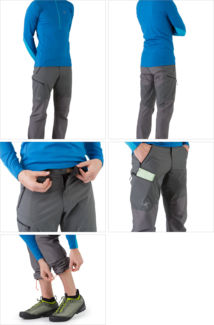 모든 범위의 등반활동에 다양하게 착용이 가능한 전천후 팬츠. 아크테릭스의 하이브리드 테크놀로지를 적용하여 외부와의 마찰이 잦은 무릎 하단부위에 내구성이 뛰어난 Fortius™ 원단을, 상단에는 가볍고 통기성이 뛰어난 TerraTex™를 사용했다.