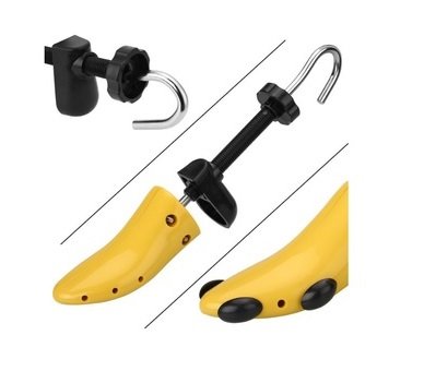 Product Description "FIX The Shoe Not The Bunion" Transform Your Shoes or Pumps into Perfect Fitting and Comfortable Shoes. Now You don't have to let your feet suffer for weeks to break into new shoes. With Hansi Naturals shoe stretcher, you can stretch your shoes both in length and width at the same time. Targeted Relief: included are 8 removable pressure relief plugs, allowing you to stretch very small areas of your shoes, letting you zero in on painful pressure points. Steps: At first, insert the removable pressure relief plugs in the appropriate holes where relief is needed. Then insert stretcher in shoe. Step One- LENGTH STRETCH : Turn the round plastic handle in clockwise direction until you begin to see surface pressure showing on shoe. Step Two- WIDTH STRETCH : Turn the metal crank handle in clockwise direction until you begin to see surface pressure showing on shoe. Step Three-WAIT FOR THE BEST RESULTS: Leave shoe stretcher in place for at least 24 hours. Step Four-REMOVE STRETCHER FROM YOUR SHOE: Turn handles in counterclockwise direction. NOTE: In order to avoid damage of your shoes, DO NOT OVERSTRETCH!!! 0