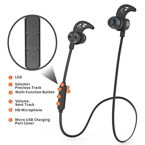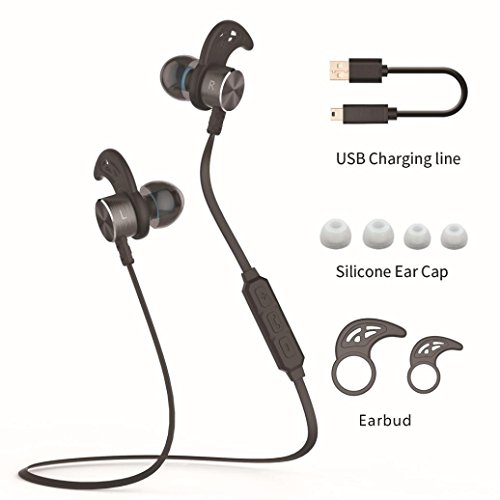 Feature : HD stereo sounds: Bluetooth 4.0 EDR technology with APT-X and adopted CSR8635 Bluetooth chip can output HD voice and more energy efficiency, more stable Bluetooth signal transmission. / Built-in magnets let you attach the two headphones together when not using, and wear like a necklace around your neck, a convenient way to carry around when you don't need them / Ultra-lightweight at 0.48 ounces, these earbuds do not cause any ear discomfort, and can be effortlessly worn all day. Includes S/M/L sport eartips and in-ear earhooks, so you will never worry about the earbuds falling out. The uniquely ergonomic design ensures a comfortable and secure fit for running, jogging, cycling and many other activities. / Smart noise canceling: Noise Cancellation CVC6.0 reduces outside noises and enables clearer sound from microphone. Perfect for working out along with excellent noise isolation, your listening and talking will be more clear. / Perfect compatibility, support most mobile phones with bluetooth device,Pad and desktop computer.