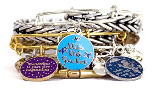 You will believe the pixie's presence will be close at hand with this Tinker Bell Bangle by Alex and Ani. It features an enamel cloisonné charm with the quote ''Believing is just the beginning.'' Gold finish.