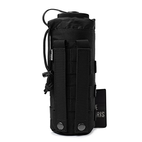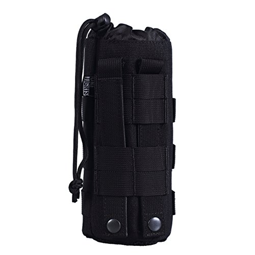 OneTigris Mesh Bottom MOLLE Water Bottle Pouch Drawstring 1000D Tactical Hydration Carrier (Black)