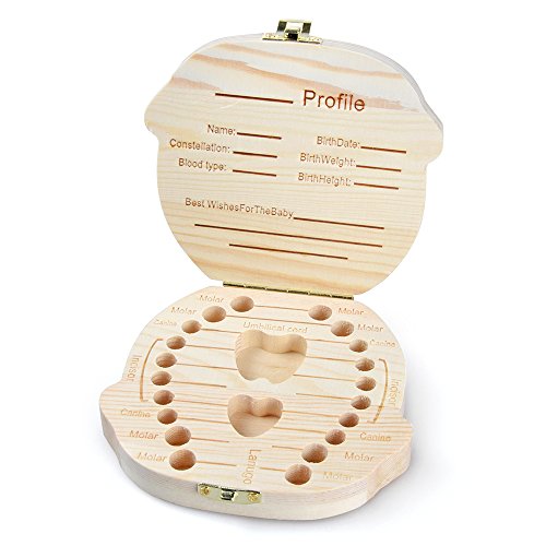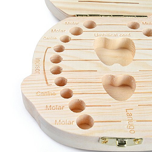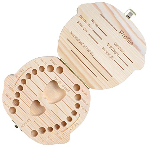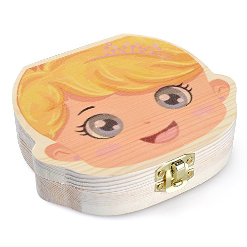 Eteng Baby Teeth Album Tooth Fairy Box Wooden Holder Keepsake Storage Box For Kids(Girl)