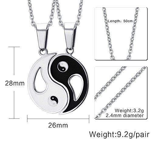 -. Feature : Come with 2PCS Pendant Necklace with 2 Chains / Made of Quality Stainless Steel, Strong and Durable. Free of Lead and Nickel / Hypoallergenic, High Polished Smooth Apperance, Great Eletroplated, Lasting Color Retention. / Durable 22 inches Yin Yang Puzzle Pendant Necklace, Suit to Both Male and Female. / Included with one small velvet gift bag.