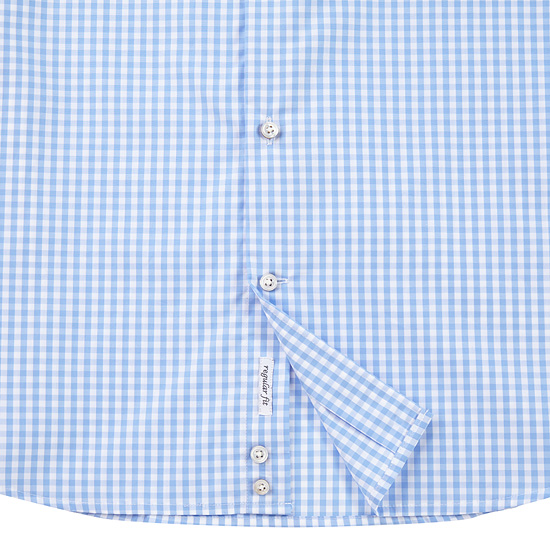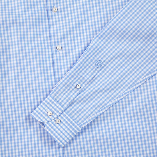- 시원한 블루컬러의 깅엄 체크를 적용하여 청량한 남성 셔츠.