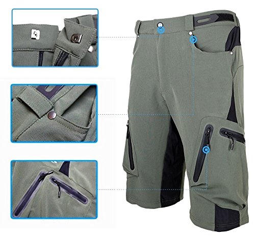 ALLY Men's Water Repellent MTB Baggy Cycling Shorts, Loose-fit Bicycle Biking 1/2 pants,Outdoor Sports Leisure Bottoms (XL 34"-36", Army Green)
