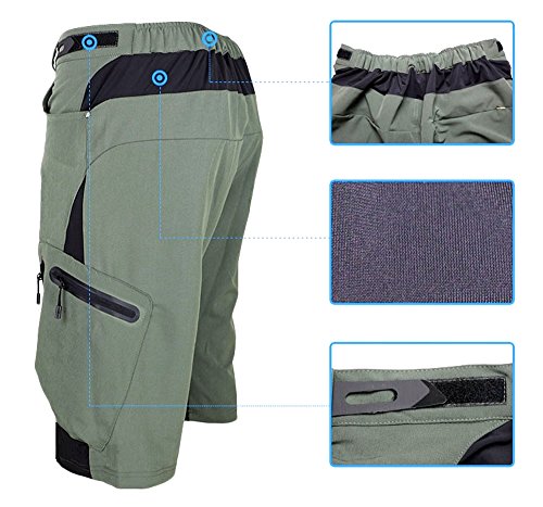 ALLY Men's Waterproof MTB Baggy Cycling Shorts, Loose-fit Bicycle Biking 1/2 pants,Outdoor Sports Leisure Bottoms (M 30"-32", Army Green)