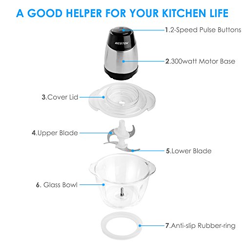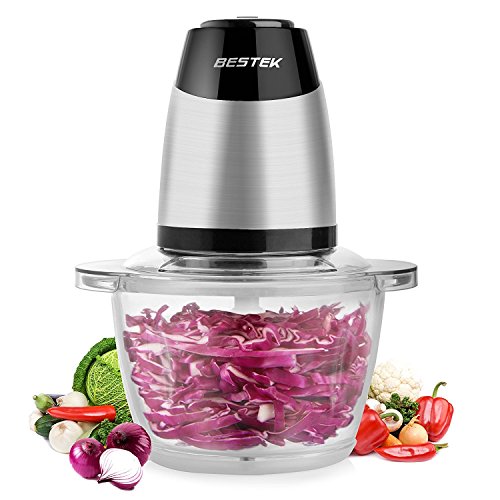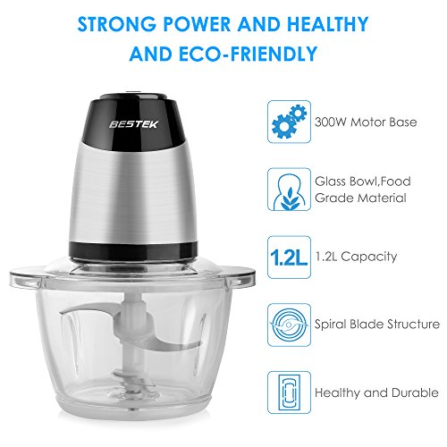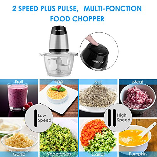 BESTEK MG14 Electric Food Chopper for Meat, Vegetables, Fruit and Nuts with 5-Cup Glass Bowl, 300W Stainless Steel Motor Unit and High/Low Speed Choice