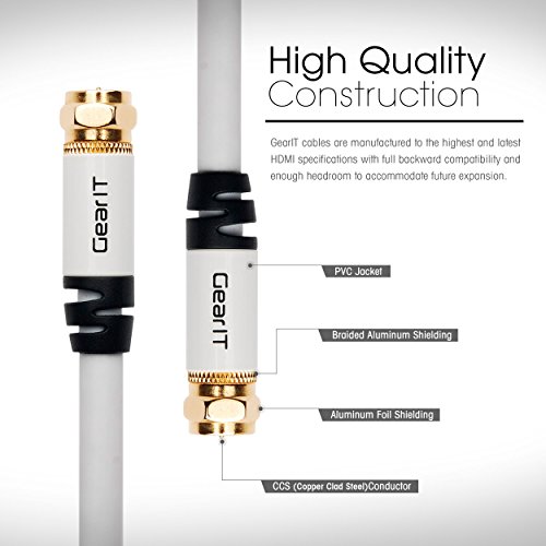- Title : GearIt Coaxial RG6 Digital Audio / Video Cable (10 Feet / 3 Meters) - UL CL2 In-Wall Rated - RG-6 F-Type 75 Ohm Gold Plated Connectors, White