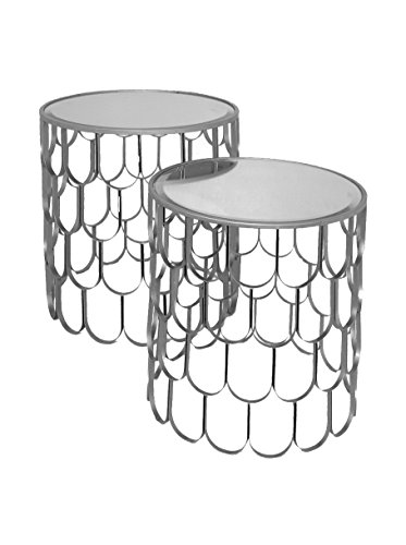 -. Feature : Beautiful polished silver finish / Sturdy metal frame with mirrored top / A great option for additional flexible table space / Set of 2 tables