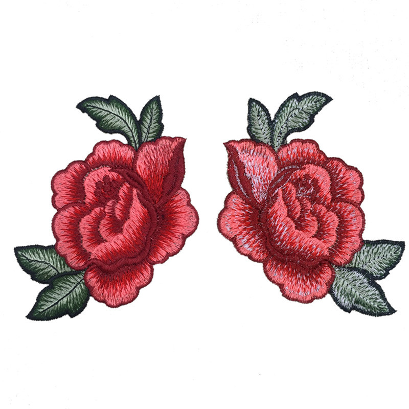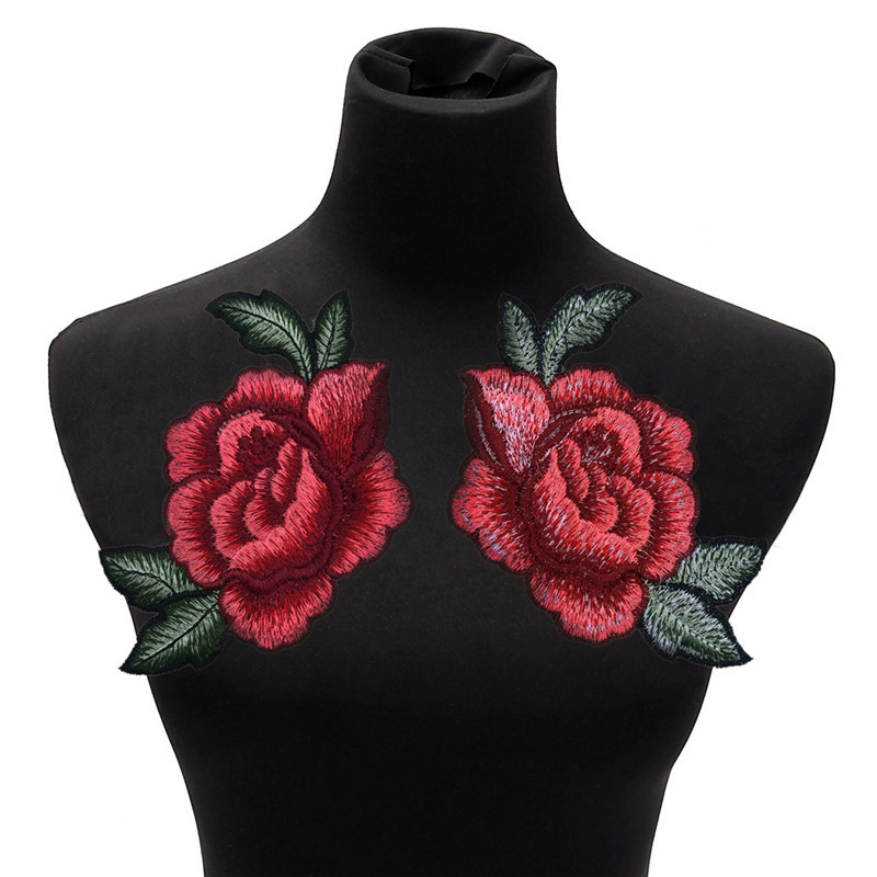 1 Pair Embroidery Rose Flower Sew On Patch Badge Bag Jeans Dress Applique Craft