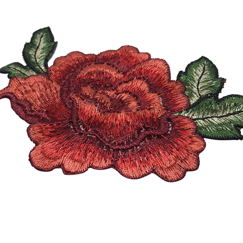 Hot 3D Floral Red Flower Floral Embroidery Patches Cloth Trim Applique Patch