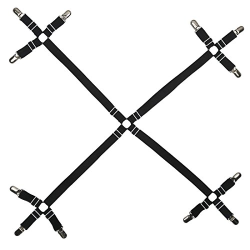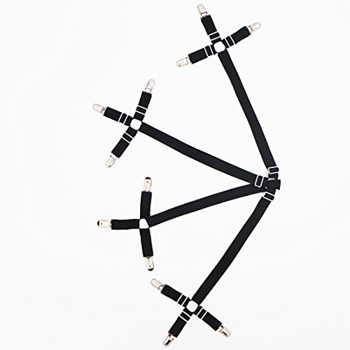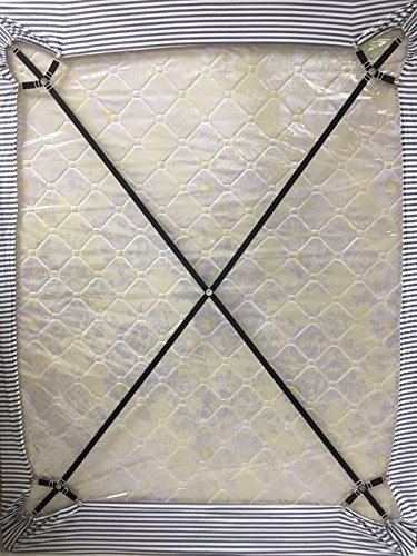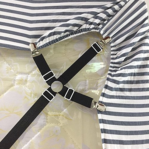 - Four Sides Triangle,Crisscross side to side, Adjustable Bed Sheet Fasteners at the corners.