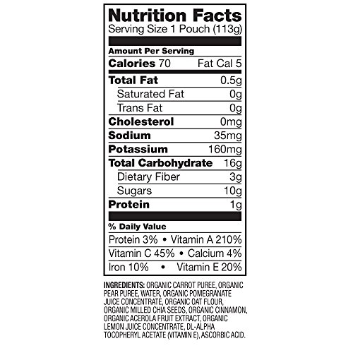 Mighty veggie blends surprise little taste buds with a full serving of organic veggies that’s as tasty as it is nutritious. Each garden-inspired pouch delivers vitamins, fiber and omega 3-ala to fuel your active tot. With fun flavors and textures just waiting to be squeezed, your independent eater can gobble up their veggies anytime. We blend organic carrots with pears, pomegranates and hearty oats for the perfect toddler snack. It's mighty eats for mighty tots.Feature