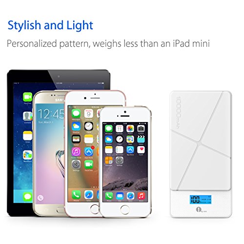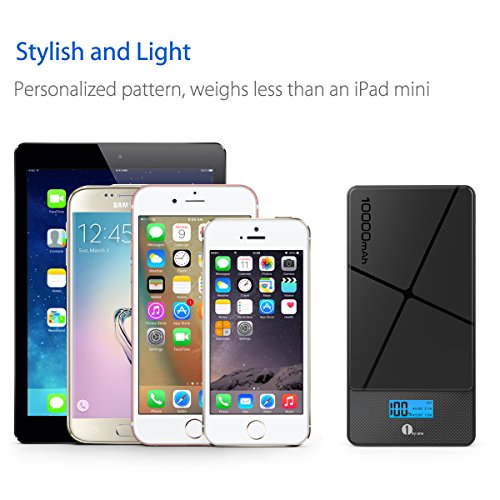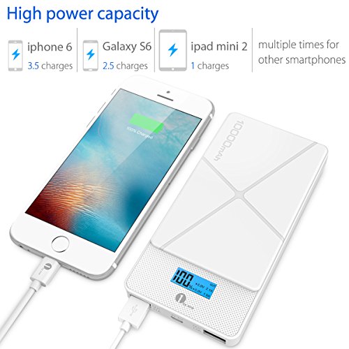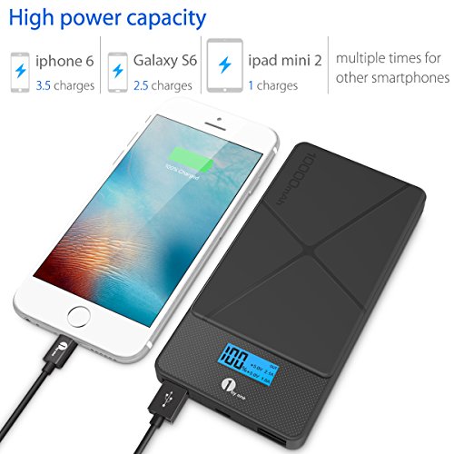 -. Feature : Ultra-High Capacity - Charges an iPad Air almost once, an Galaxy S6 2.5 times, an iPhone 6 3.5 times and other smartphones multiple times. / Dual USB Outputs - 2 USB ports support fast charging for 2 devices at the same time (5V / 2.1A and 5V / 1A), delivering the fastest possible charge up to 2.1 amps. / Compact & Portable ¨C 5.71 x 2.83 x 0.57in, 0.51lb. Slim and sleek enough to hold in your hand and perfect for outdoors and on the go, keep your devices running whenever and wherever you are. / Stylish Design - Classic Pattern makes the power bank a personalized and perfect complement to your smartphones, and the LCD display ensures easy check and accurate battery capacity. / Ultra-Safe Protection - Sophisticated protection ICs effectively prevent overcharge, overcurrent and short circuits, ensuring complete reliability.