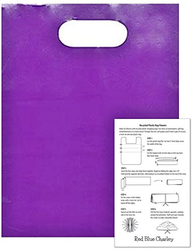 - 100 glossy 1.25 mil plastic die cut handle bags and 1 craft instructional for making fun flowers from plastic bags.