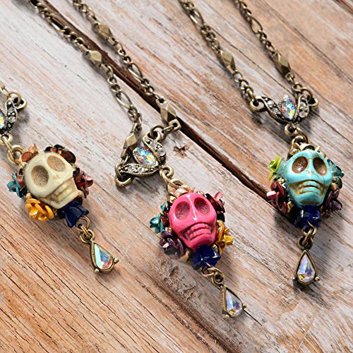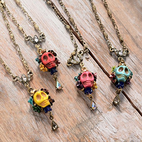 -. Title : Day of the Dead Skull Necklace, Dia de los Muertos Necklace, Calavera Necklace, Dia de Muertos Jewelry, Colorful Skull Necklace, Mexican Jewelry, Sweet Romance
