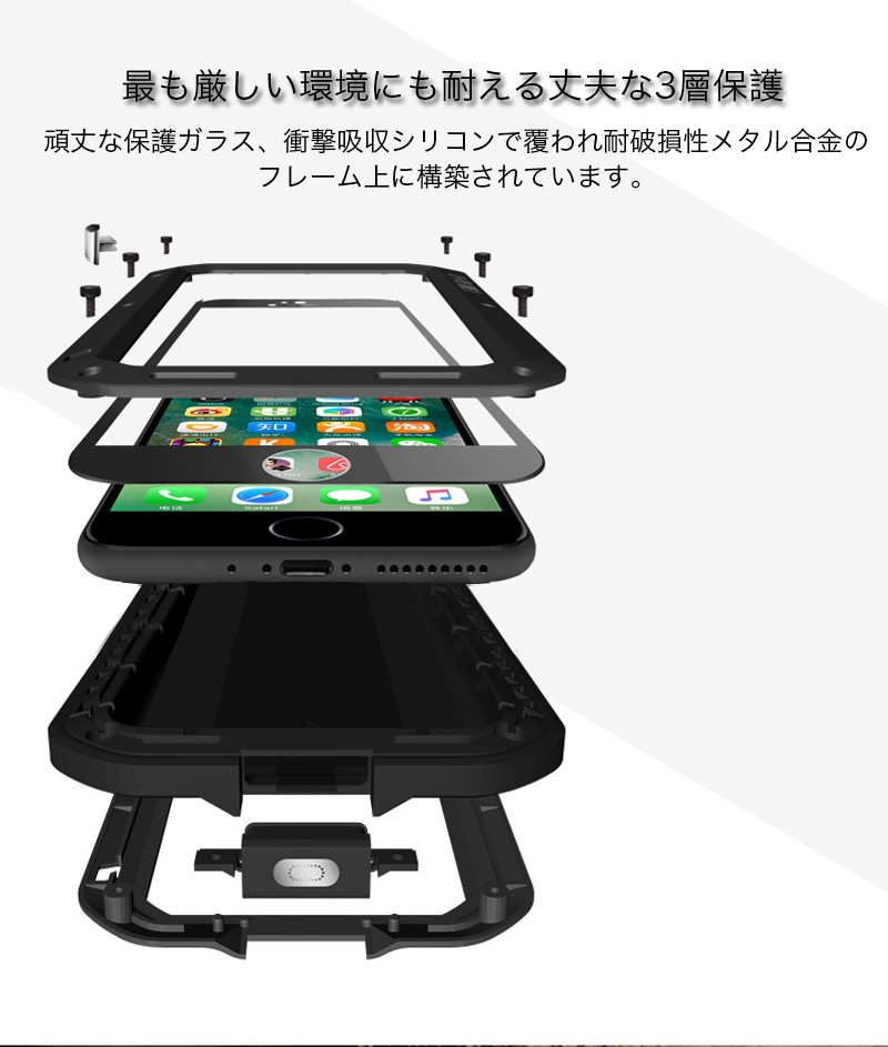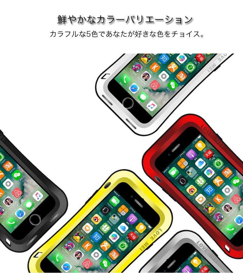 ★「対応機種」iPhone8(アイフォン8)、iPhone8 Plus(アイフォン8 プラス)、iPhone7(アイフォン7)、iPhone7 Plus(アイフォン7 プラス)★「カラー」シルバー(銀)、ブラック(黒)、ホワイト(白)、レッド(赤)、イエロー(黄)★「商品特徴」アウトドア向けの防滴/防塵・耐衝撃/落下性能を備えたタフケースの曲線モデルが新登場!強い衝撃、落下、スクリーンのダメージ、そして水滴やほこりからも守ります。側面と背面だけでなく、スクリーン部分をわずかに包むように前面部分も保護します。★「キーワード」アイホン8 / アイホン8プラス / アイホン7 / アイホン7プラス ケース おしゃれ 耐衝撃 カバー オシャレ 生活防水 防滴 防塵 アウトドア向け スマホケース 落下保護 衝撃吸収