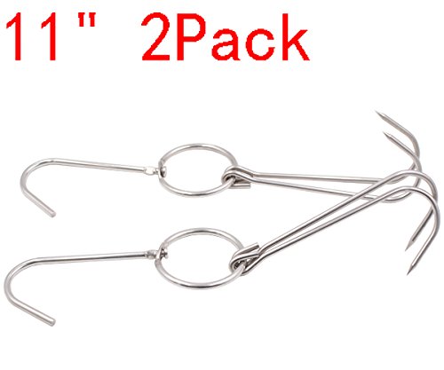 ALELE Double Hooks Meat Hooks Poultry Roasting Hooks Butcher Hook Processing Meat Hook Stainless Steel Rotary Device Slaughtering Barbecue(11Inch)