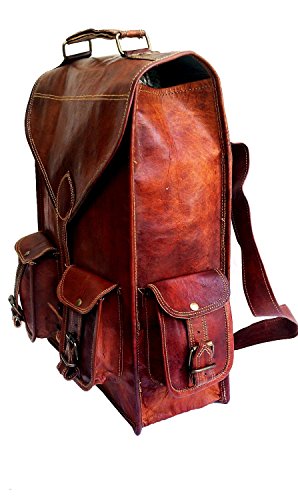 -. Binding : Electronics -. Brand : jaald -. Color : Brown -. EAN : 0796520511897 -. Feature : Leather laptop messenger bag cum backpack for men and women. BASED ON CUSTOMER REVIEWS WE HAVE IMPROVED THE PLACEMENT OF THE BUCKLES PLEASE SEE PHOTO 3 . Dimensions : (approx) 15 X 11 X 4.5 inch. (height , breadth, inner depth ) - 38 cm X 27.9 cm X 11 cm . 25 inch shoulder drop (54 - 57 inch / 127 cm adjustable sling) Slightly varies as each handmade / Convertible backpack / messenger bag / briefcase satchel Three partition inside for laptop,files etc. Has four outer small pockets for misc items.Can be used as an office bag, tow zippered pockets at inner front and rear. / This briefcase comes with brass polished buckles , 100% rust free. adjustable sling. Vertical leather laptop bag Can hold 15.6" Laptops. / material : high quality leather Has an inner stitched canvas for durability.The laptop partitions are padded / The color of the bag may vary from twany to crimson depending upon the leather. However, with use the leather darkens and color matches close to the one in the photo. -. Label : Jaald Store -. Manufacturer : Jaald Store -. MPN : 15Vert1 -. PackageQuantity : 1 -. PartNumber : 15Vert1 -. ProductGroup : PC Accessory -. ProductTypeName : CARRYING_CASE_OR_BAG -. Publisher : Jaald Store -. Size : 15" -. Studio : Jaald Store -. Title : 15" Jaald convertible leather messenger bag laptop bag backpack satchel briefcase -. UPC : 796520511897