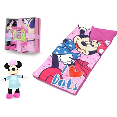 Product Description Your child will enjoy the Disney Minnie Mouse Sleeping bag with Figural Pillow which features Minnie Mouse proportionately sized sleeping bag with an astonishing new 3D figural pillow. It's a must have for every child's or friends room. Your child will enjoy hanging out with friends while playing with the characters sleeping bag. The Disney Minnie Mouse 3D figural pillow and sleeping bag set makes it easier for your child to enjoy nap time, travel and sleepovers with friends. These fun, fictional and functional figural pillow and sleeping bags are incredibly durable and easy to maintain. For ages three and up, recommended use is indoor use only. The sleeping bag is machine washable making it 100 percent mom-approved! 0