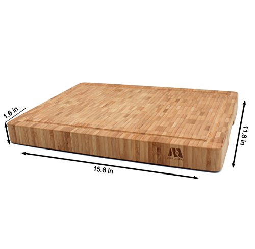 MH ZONE Large Thick End Grain Bamboo Cutting Board | Professional, Antibacterial Butcher Block | Heavy Duty Chopping Board With Juice Grooves and Handles