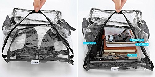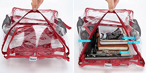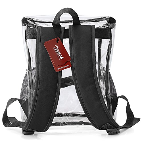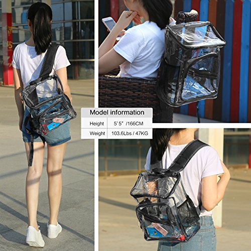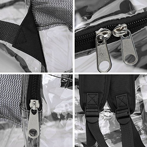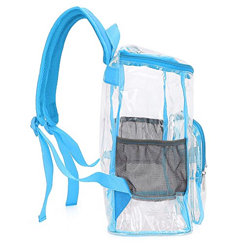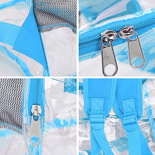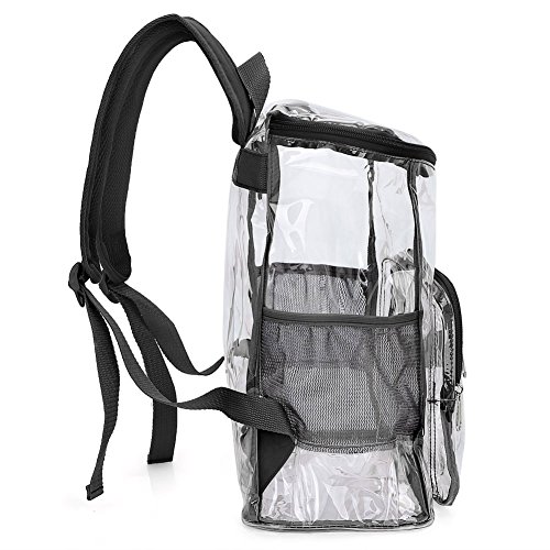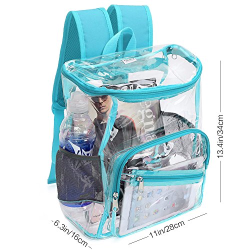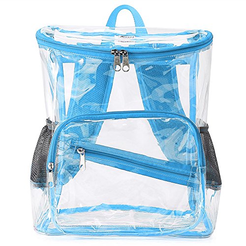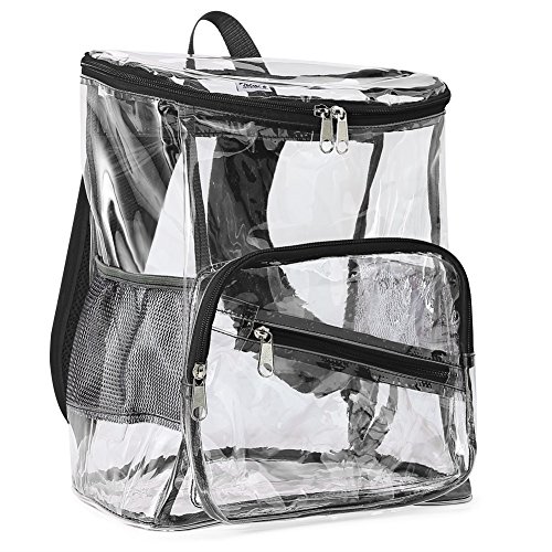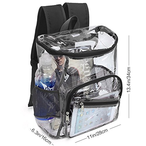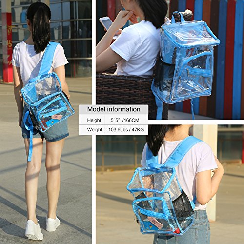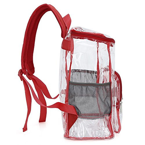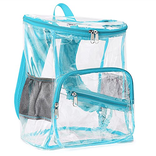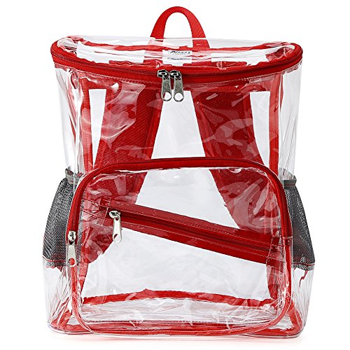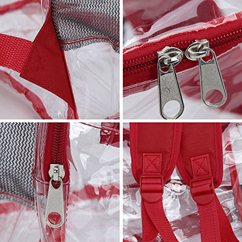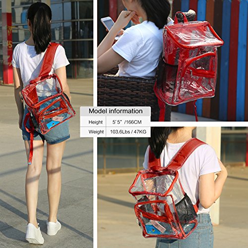 Product Description Features; Anti-cracking PVC clear backpack for A4 magazine, Ipad, keys and snacks, perfect for school, work, summer beach trip,etc. Adjustable padded shoulder straps, breathable and comfortable. Spacious space with multi zipper pockets. Two side mesh pockets for water bottle. Specifications: Material: PVC Color: Red, Black, Light blue Capacity: about 15L Size: 11x6.3x13.4in/ 28x16x 34cm (LxWxH) Package includes: 1 x Backpack 0 |