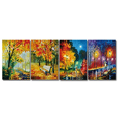 -. Title : GOUPSKY ART- City Night Street and Trees Landscape Wall Art,Modern Abstract Oil Painting,Giclee Canvas Artwork Prints Stretched and Framed Home Wall Decoration 4pcs